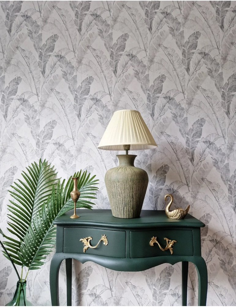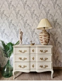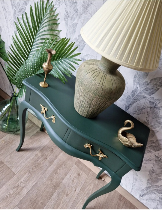 Une belle console vintage de couleur verte. Deux tiroirs de rangement avec des magnifiques poignées dorées. Un meuble très élégant qui marquera votre intérieur