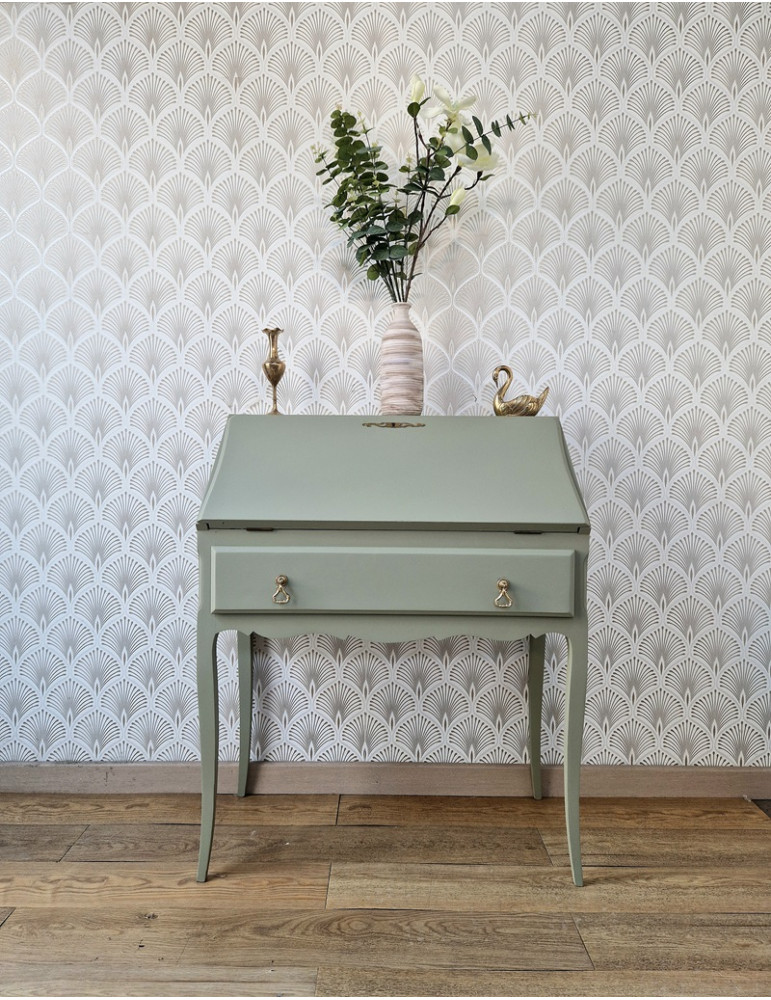 Un très élégant secrétaire de couleur verte. Très pratique grâce à son grand plateau. Ce meuble sublimera votre intérieur et vous offrira un coin de lecture
