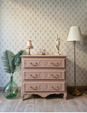 Une commode vintage de couleur blanc champagne