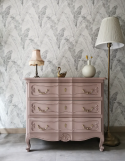 Une très belle commode galbée de couleurs blanc gris et des poignées dorées. Une couleur unique car il s'agit d'un mélange de deux peintures. Un meuble très pratique grâce à ces grands tiroirs