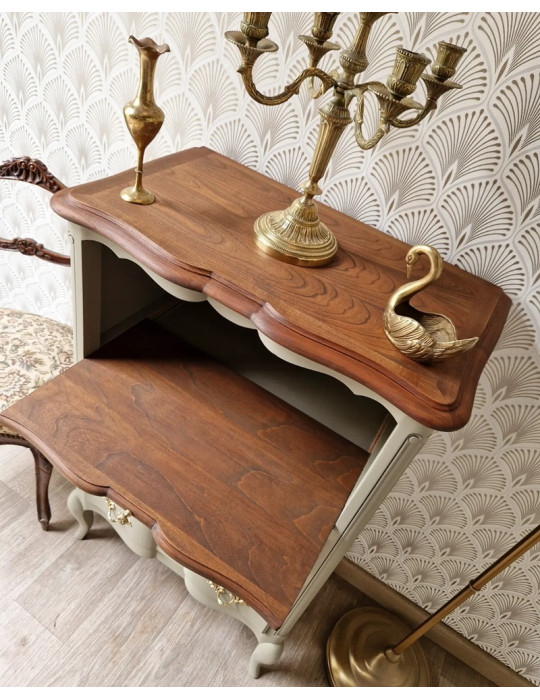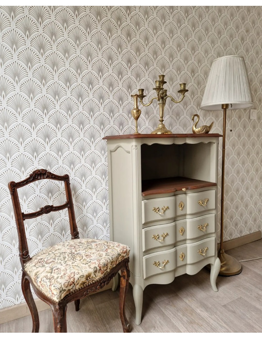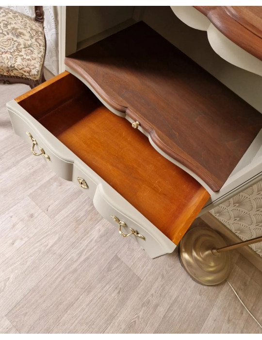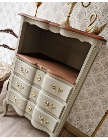 Un magnifique chiffonnier à niche. Une sublime couleur verte avec des nuances grises. Equipé d'une tablette en bois, ce meuble pourra faire un coin de lecture. Chic et élégant, ce meuble sublimera votre intérieur