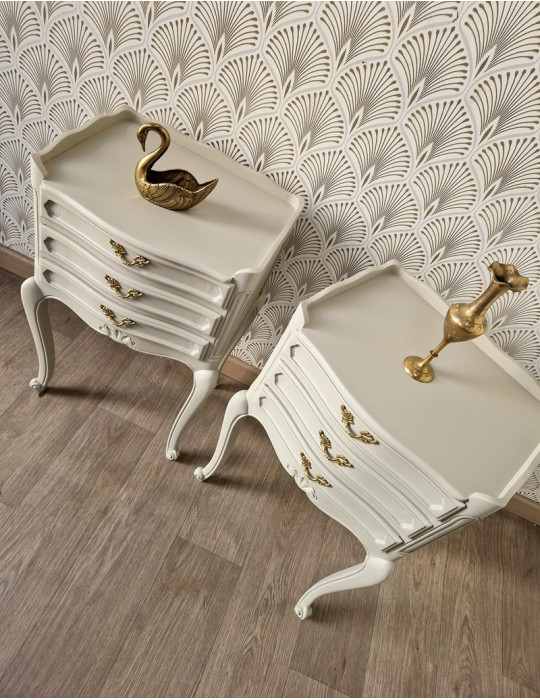 Une sublime paire de chevets de couleur blanc champagne. Une grande élégance pour ces meubles qui rajouteront beaucoup de charme à votre chambre