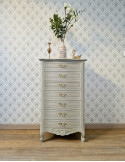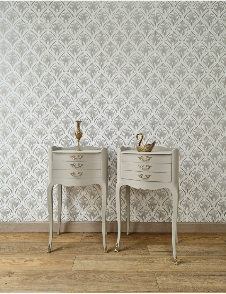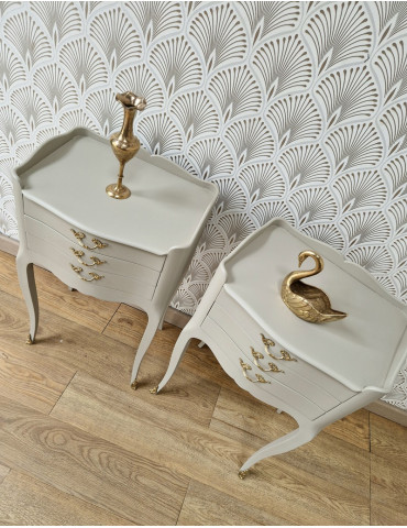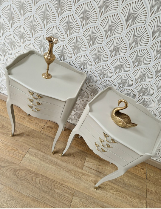 Une magnifique paire de chevets de couleur beige. Une élégante paire de chevets galbées avec des sabots et des poignées dorées. Ces tables sublimeront votre chambre à coucher