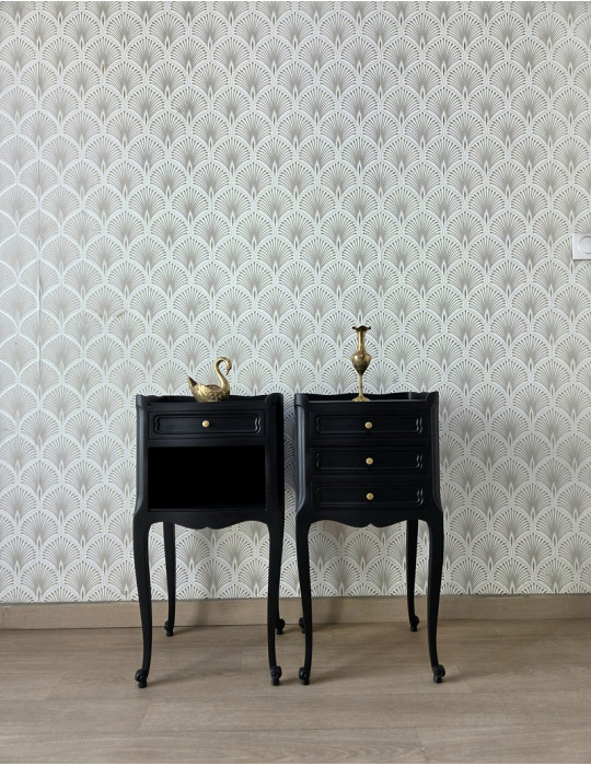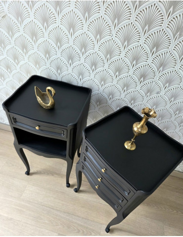 Une élégante paire de chevet style Louis XV. Une sublime couleur noire. Cette paire de chevet très chic rajoute une touche d'élégance à votre chambre