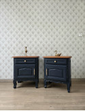 Cette armoire en bois massif type chêne est une fabrication française datant des années 50-60. Ce meuble a été restauré et remis au goût du jour au sein de notre atelier d'une manière artisanale et soignée. Afin de retrouver la structure d'origine, ce meuble a été entièrement nettoyé et poncé. A l'aide d'un pistolet de peinture de haut de gamme, nous avons appliqué une sous couche pour bloquer les remontés tanins du bois et nous avons appliqué une peinture écologique en deux couches. C'est une peinture très résistante de finition mat, à base d'eau et sans COV. Grâce à la technique de peinture (pistolet) utilisée, le rendu final et parfaitement lisse et homogène. Pour conserver l'âme du meuble, nous avons gardé les poignées d'origine qui ont été nettoyées et redorées