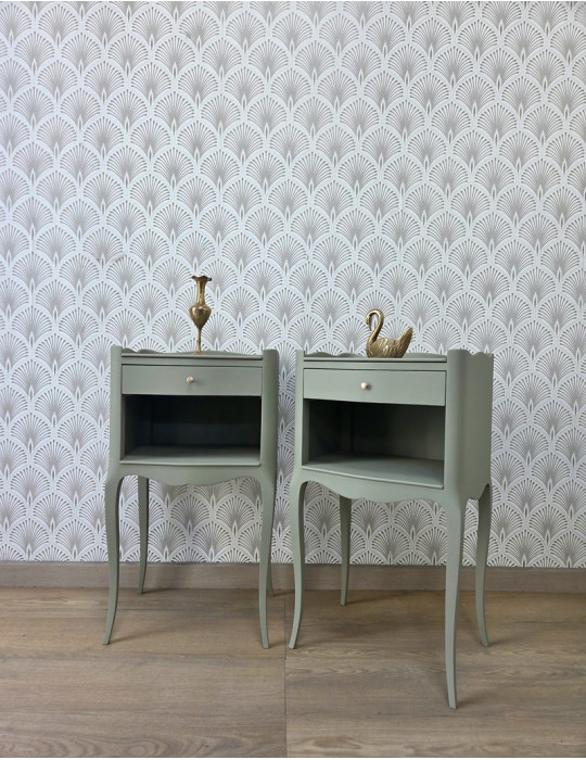 Une sublime paire de chevets de couleur verte. équipée chacune d'un tiroir et d'une niche. De style Louis XV, cette paire chic et élégante sublimera votre pièce