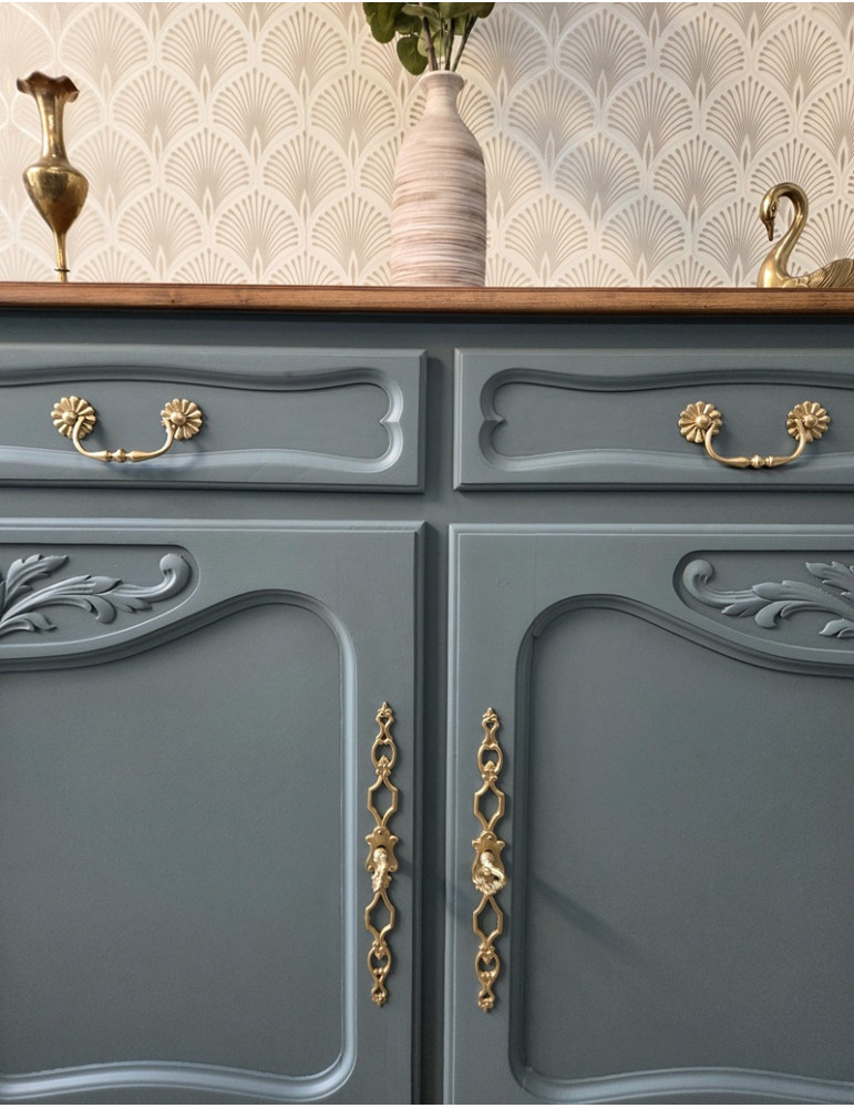 Un buffet vintage de couleur bleu-gris