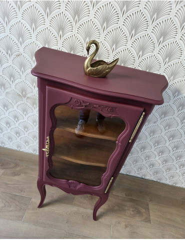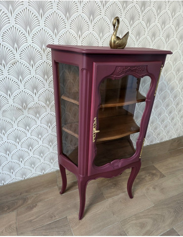 Une sublime vitrine de style Louis XV. Une belle couleur rouge bordeaux. Très élégante de par sa forme et sa taille, ce meuble décoratif vous permet de présenter vos beaux objets décos.