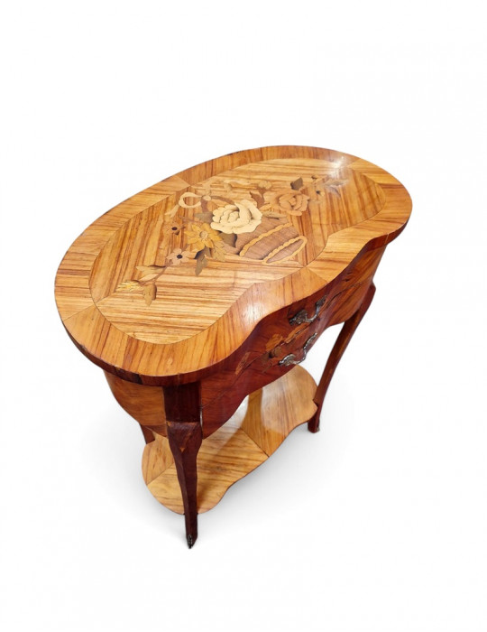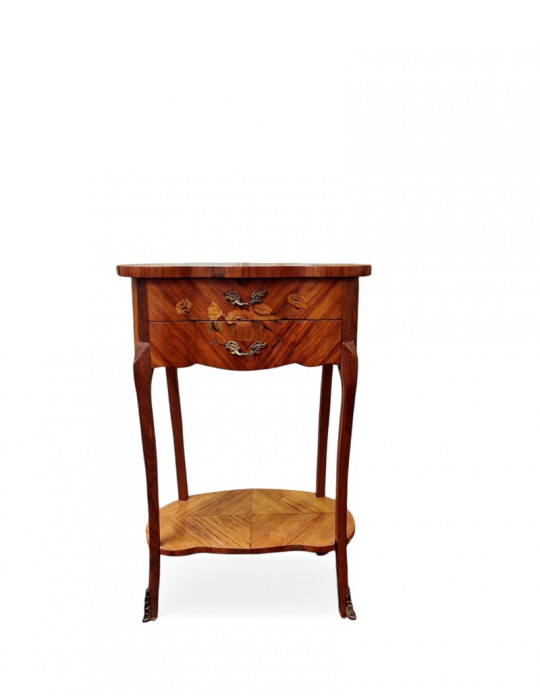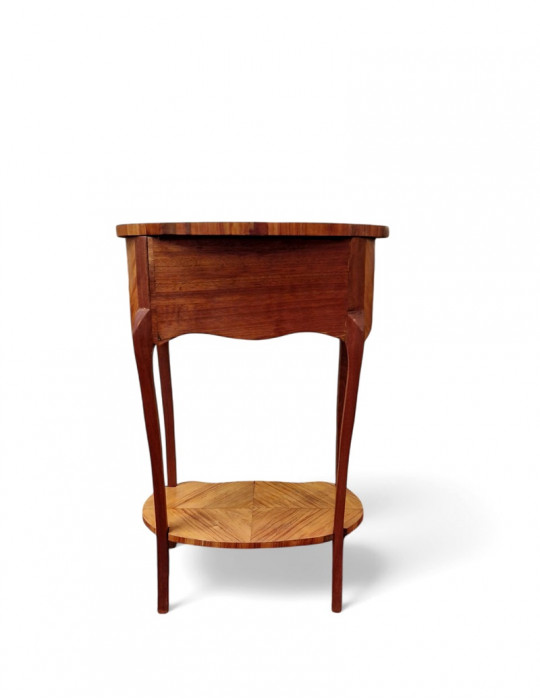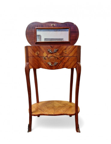 Une sublime travailleuse en marqueterie bois de rose. Ce meuble contient deux plateaux et un tiroir. Très élégant, cette travailleuse a été entièrement restaurée au sein de notre atelier